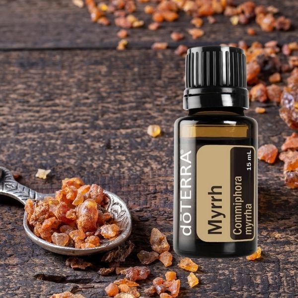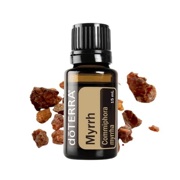 Ефірна олія мірри від ДоТерра — це цінний натуральний продукт, який отримують шляхом парової дистиляції смоли дерева Commiphora myrrha. Ця олія має багатий, складний аромат з нотами карамелі, цитрусових, м’яти та чорного перцю, що робить її популярною в ароматерапії та косметології.