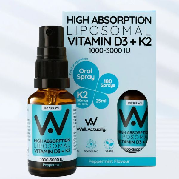 Ліпосомальний спрей D3 і ґфвK2 зі смаком м’яти Well.Actually | Liposomal Vitamin D3 & K2 Oral Spray | 180 sprays